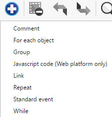 If you select the Add a new empty event icon, left-click on the Add a new event shortcut link at the bottom of the event list, or click Standard Event in the Choose and add an event list above, GDevelop immediately creates a Standard event. Right-clicking the shortcut in the event list will show the list above, and choosing any special event type from either will immediately create that event type.