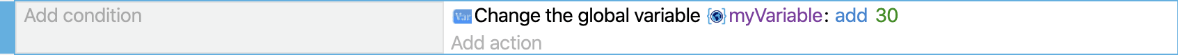 If an event does not have any conditions, the associated actions will run every frame of the game (usually 60 times per second).