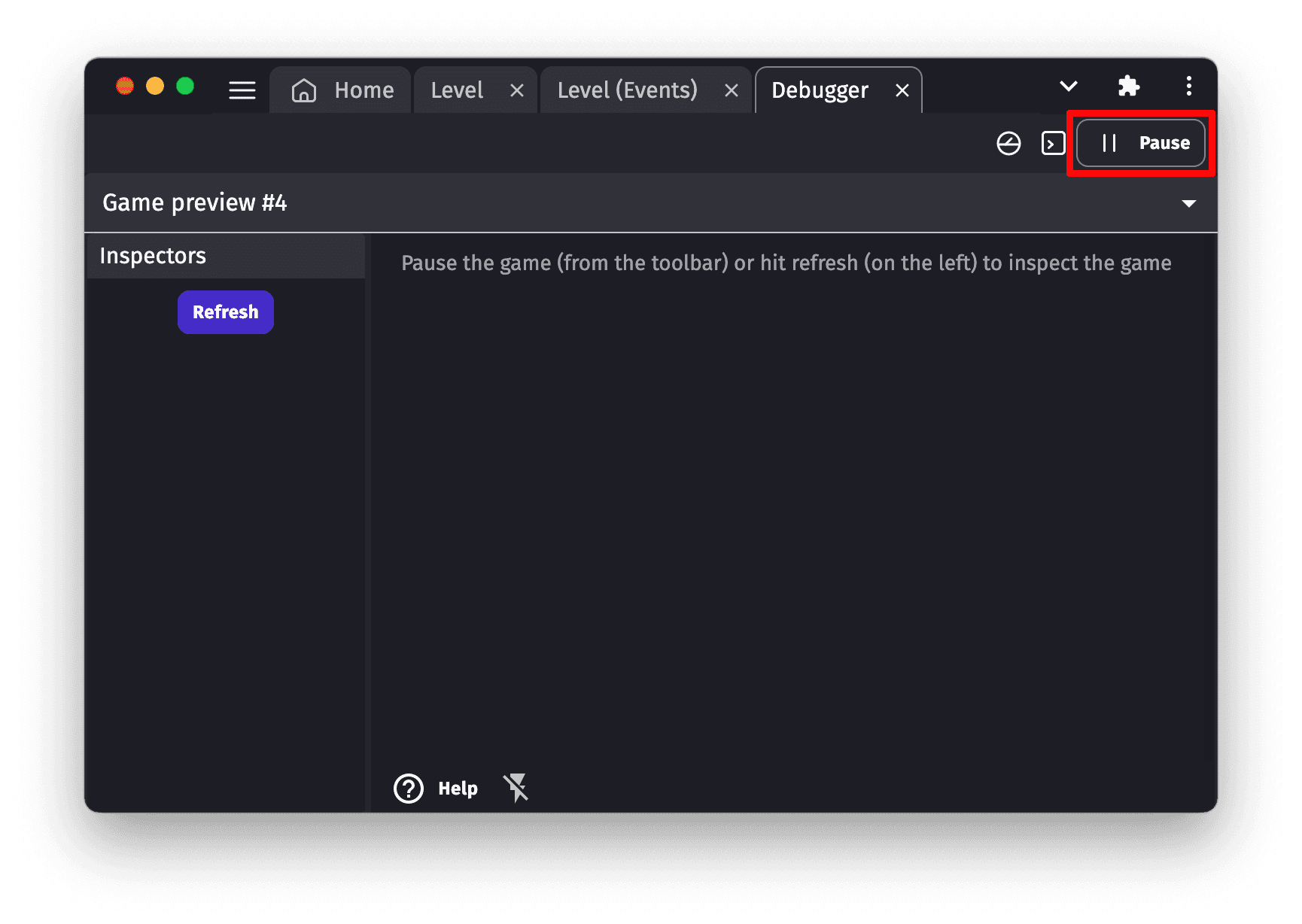 This will open a new tab called "Debugger" and will also launch a preview of your game as usual.